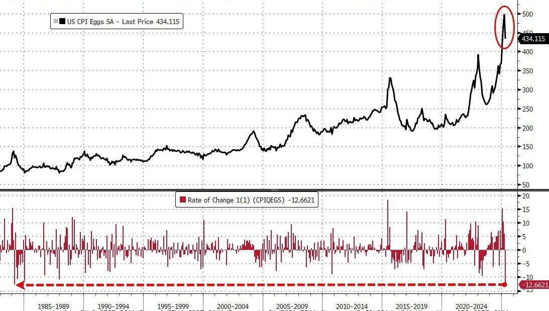 But what about eggs? Egg prices dropped by the most since March 1984, 12.5%.
